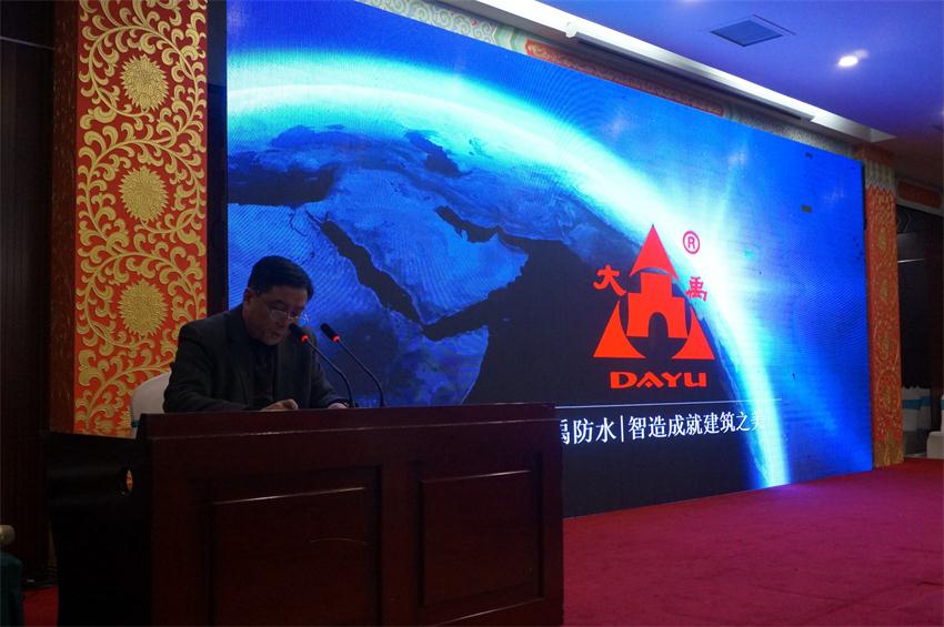 議題之二是中國十大防水品牌企業(yè)遼寧大禹集團,為本次盛會帶來了防水新技術(shù)。圖為遼寧大禹集團銷售副總經(jīng)理王健到會祝賀。